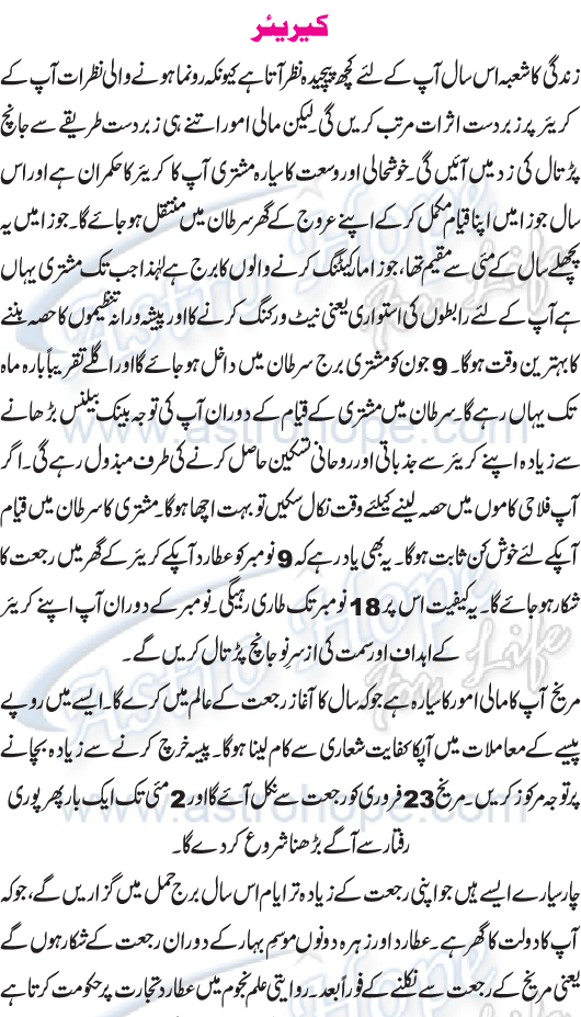 Year 2025 Urdu Horoscope